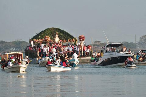 On the 2nd of February, the parishioners come together from early on to sing Las Mañanitas (Mexican happy birthday song) to the Virgin with flowers, and accompany her on her pilgrimage on land that goes from the church all the way to the pier; there she embarks on a striking journey through the waters of Papaloapan, where they take her upstream on a long pilgrimage of boats, which guard over her with praise and devotion.